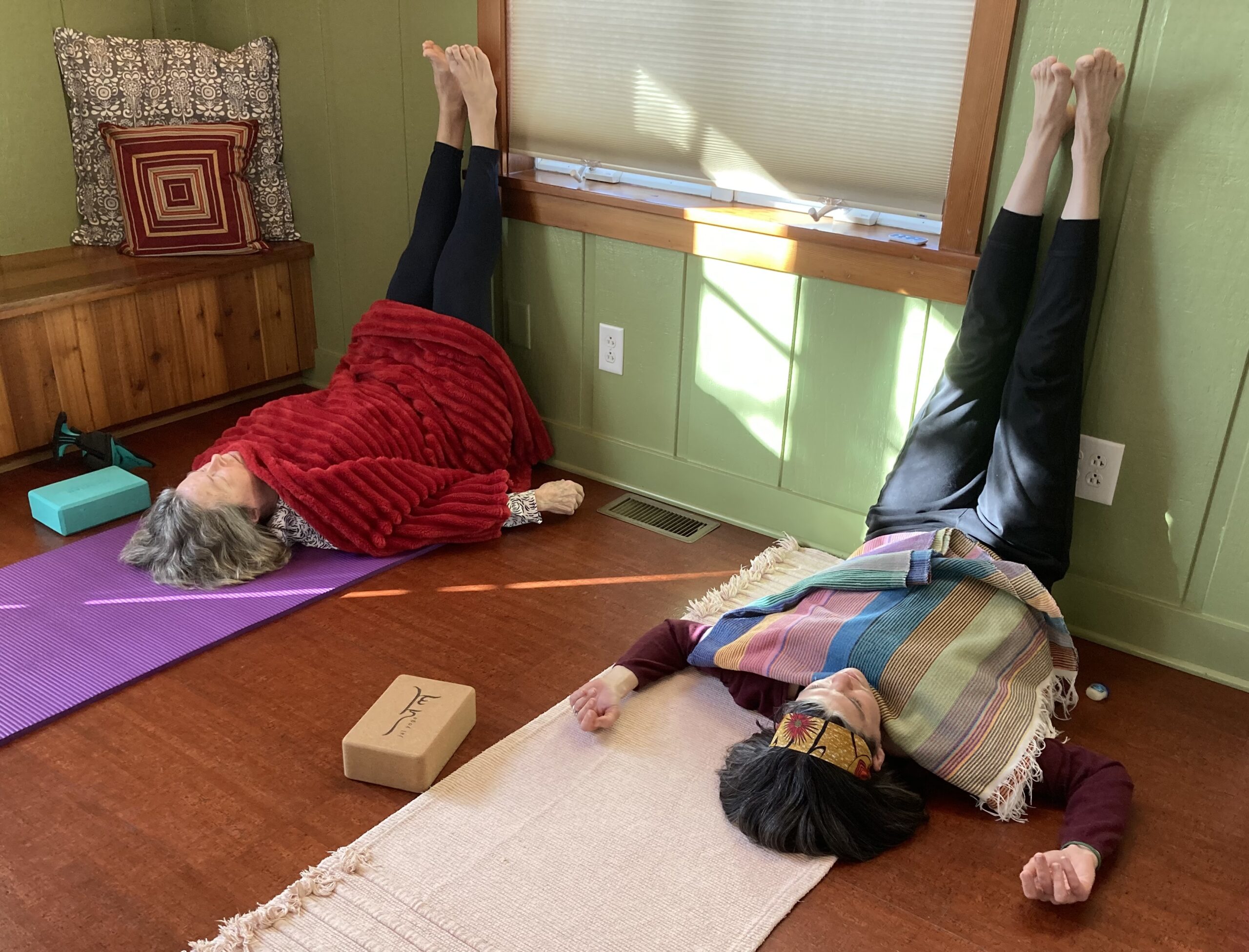 Last but not least is crowd favorite Legs Up the Wall. This is a great example of a restorative yoga pose that stimulates our parasympathetic nervous system–our body’s ‘rest and digest’ system. Use it liberally for good digestion, and for overall good health and wellbeing. You can use props, or just lie with your back flat on your mat. See which variation helps you feel most relaxed.