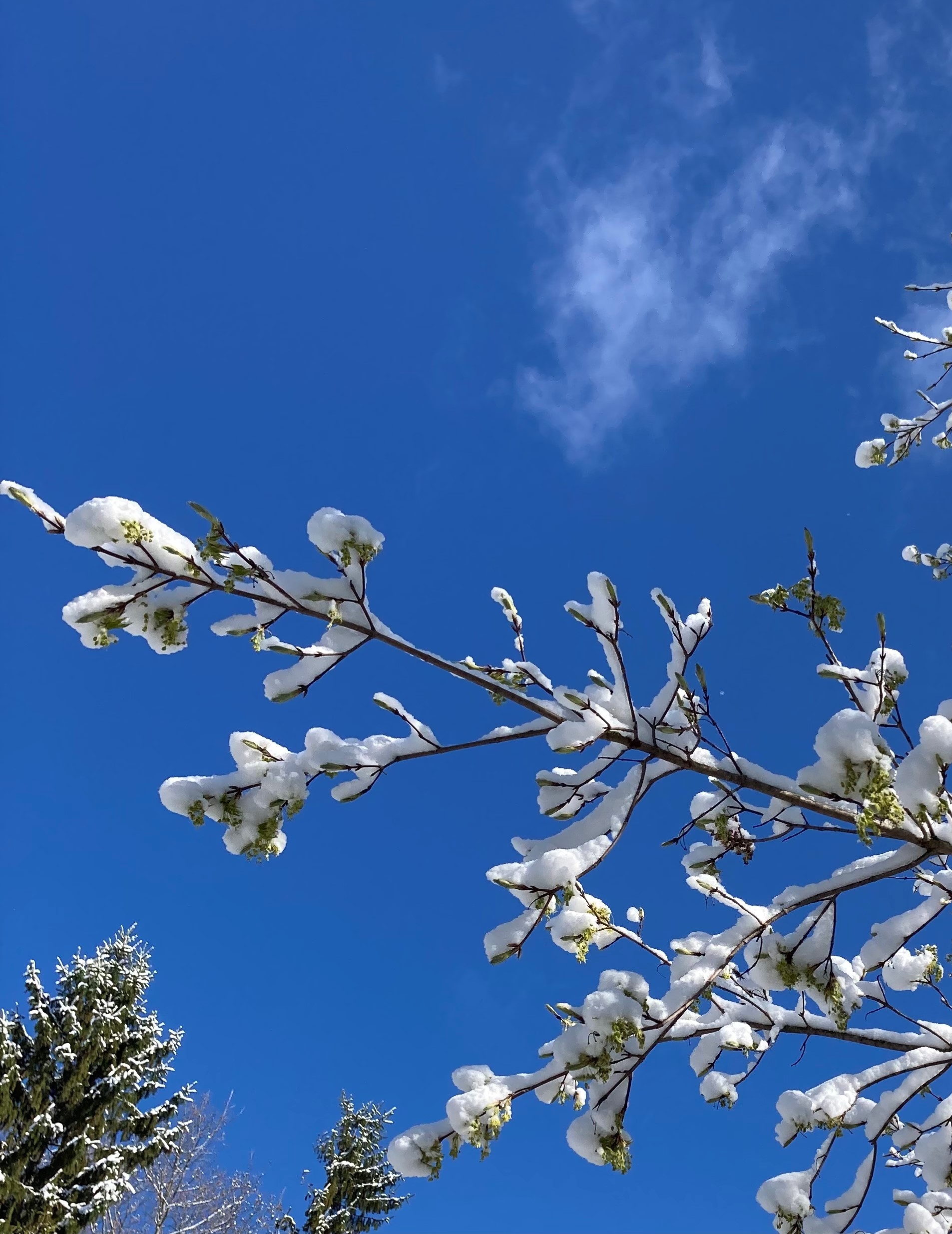These were scenes from my morning walk on April 21, exactly two weeks after my (once-in-a-lifetime, no doubt) 80 degree birthday. Can something be beautiful AND sad at the same time? I personally think so. It’s a good reminder that life isn’t either/or, black or white. And it’s a good reminder about practicing present moment awareness. Just observing, paying attention, drinking it all in…especially that blue sky.